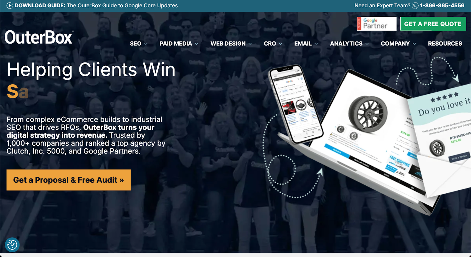 OuterBox Design positions itself as a broad digital marketing agency serving multiple niches, including e-commerce and various service businesses. While they have experience across different sectors, their approach isn’t specifically tailored to the unique needs of moving companies.