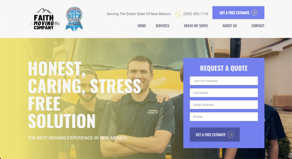 Faith Moving Company is a locally based mover that emphasizes reliability and personal service. They focus on residential moves within Santa Fe and nearby regions, offering packing assistance and furniture disassembly/reassembly. Quotes are provided free, with transparent hourly billing. The company is well-regarded in the community for strong word-of-mouth referrals and a customer-first approach.