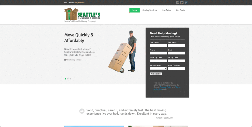 For budget-conscious homeowners, Seattle’s Best Moving is often a go-to recommendation. Licensed and insured, the company offers fast, reliable service at some of the lowest hourly rates in the city. Reviews emphasize their punctuality, careful handling, and surprising speed without cutting corners. Customers describe the company as a dependable choice for last-minute moves or straightforward local relocations. Their transparent pricing makes them one of the most cost-effective movers in the Seattle area.