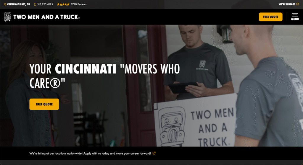 Two Men and a Truck combines national brand reliability with a trusted local presence. With over 30 years of experience, they provide residential, long-distance, senior, and business relocations, along with professional packing services. Written estimates, hourly and flat-rate pricing, and transparent communication contribute to their reputation. Positive Google and BBB reviews consistently note their timeliness, professionalism, and attentive customer care, making them a solid choice for all types of moves.
