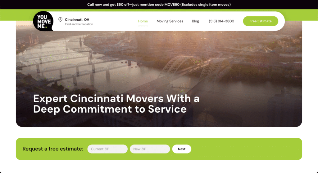 You Move Me Cincinnati offers stress-free, “no-surprise” moving experiences. Their services include local and long-distance moves, commercial and senior relocations, and packing assistance. Digital estimates provide accurate upfront pricing, avoiding unexpected fees. Local customers appreciate punctuality, friendly crews, and consistent communication, earning strong reviews for reliability. Their “Best Move Ever” branding reflects the company’s commitment to quality service and customer satisfaction.