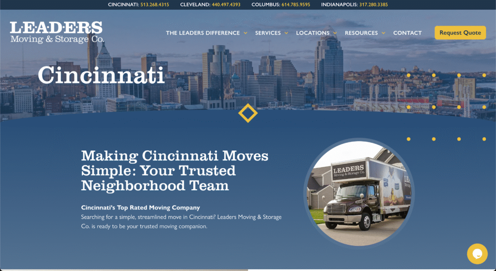 Leaders Moving & Storage boasts decades of local expertise in residential and commercial moves. They provide professional packing, storage solutions, and specialty item handling. Pricing is transparent with no upfront deposits, and charges are often itemized rather than hourly, giving homeowners clarity and control. Residents praise the company for its deep knowledge of Cincinnati neighborhoods, highly trained crews, and reliable service, making them a trusted option for complex moves.