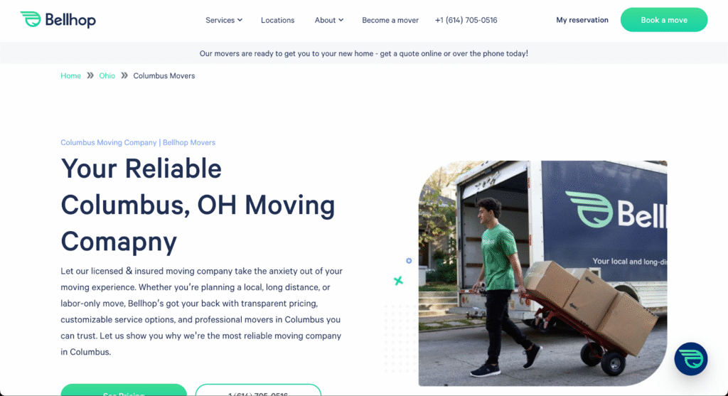 Bellhop Movers brings a modern, tech-enabled approach to moving, backed by a national brand reputation. With background-checked movers and a high average rating (~4.8), Bellhop is celebrated for reliability, transparent pricing, and user-friendly online booking. They offer local and long-distance moves, labor-only services, and packing assistance, making them a versatile choice for diverse needs. Customers consistently highlight the convenience of guaranteed online quotes, eliminating surprises and enabling efficient planning. Bellhop’s combination of professionalism, flexibility, and friendly service has earned them a loyal client base in Columbus.